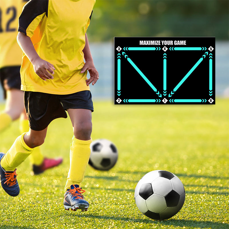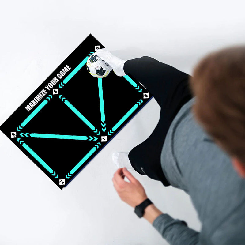 フットワークトレーニング- このマットには様々な足跡パターンが施されており、多様なフットワークドリルをガイドします。素早く正確な動きを養い、ボールコントロールと機動性を向上させます。