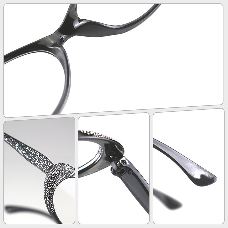 ファッショナブルなキャットアイデザイン:洗練されたキャットアイフレームにエレガントなラインストーンチャームをあしらったこのメガネは、仕事や読書中の必須の眼球保護機能を提供しながら、あなたのスタイルに華やかさを添えます。