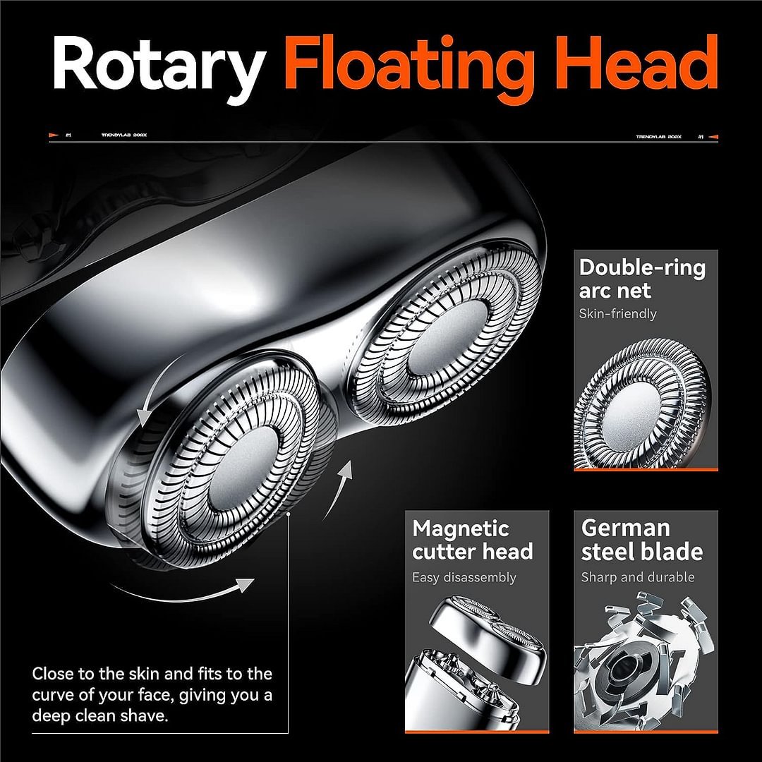 鋭いステンレス鋼の渦巻き刃は硬いひげに最適。0.1mmの薄型ステンレス鋼箔と二重リング3Dカミソリネットが剃り残しを減らし、浮遊式アーチ面が肌を滑らかにし、毛根から毛を除去します。