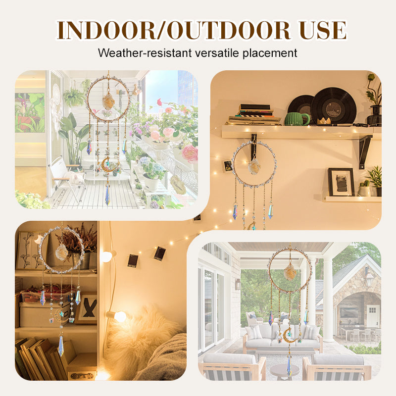 ダイナミックな虹の屈折 - 虹色のガラスチップが太陽光を捉え、踊るようなプリズム模様を生み出します。各要素がミニチュアプリズムとして機能し、スペクトル光によるディスプレイで空間を変容させます。その光は一日を通して変化し、魔法のような視覚効果をもたらします。