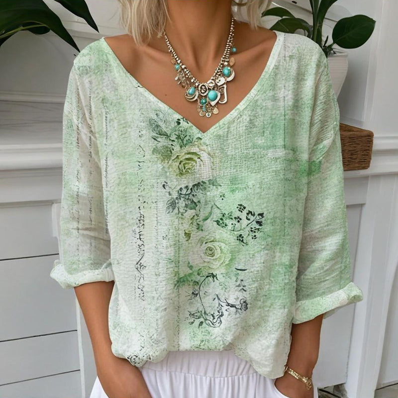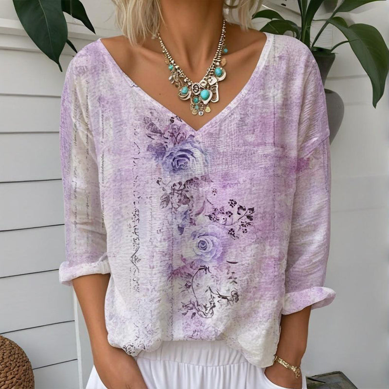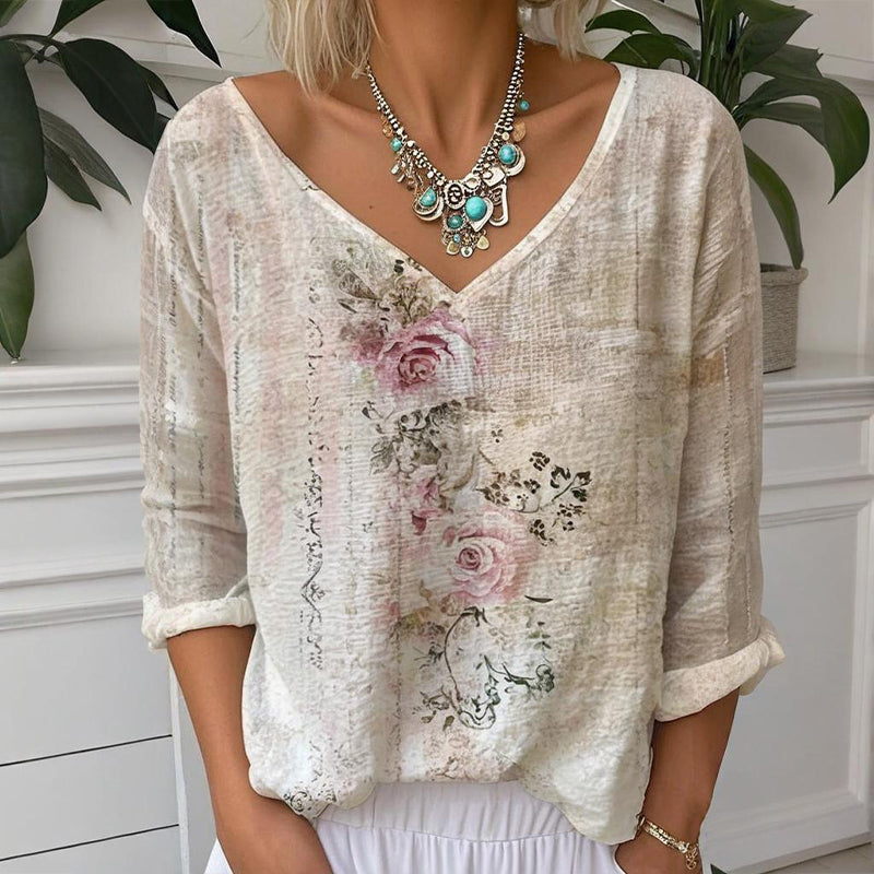 - パッケージ内容:レディース ゆったりVネック フラワープリントトップス×1